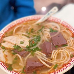 I love to come here for a quick lunch, but if they are busy you will have a wait for food, best to order ahead if you are in a hurry. Service is good and the food makes up for the noisy environment... can get very loud inside. I love the cold noodle dishes (51 pictured) or the rare beef pho. The calamari salad is huge and can be ordered as an entree, it is one of my dad's favorites. Potstickers are gigantic and spring rolls are always fresh with crispy lettuce!