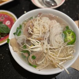 Basic ambiance, nothing special but decent. Food was very hot , fast and good flavor. Pho was good, some meat was really fatty. Very friendly service.